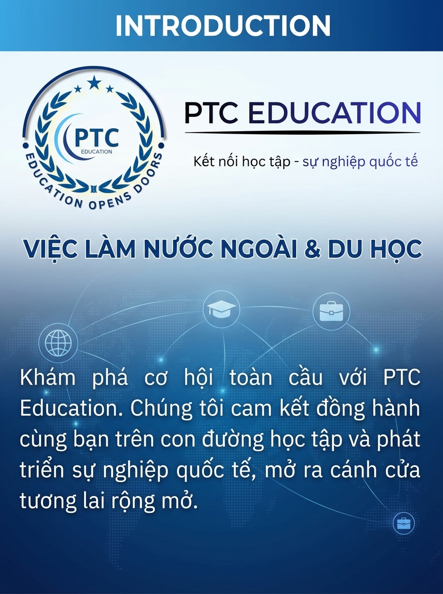 “Khám phá nền giáo dục hàng đầu châu Á với chi phí tối ưu. PTC Education liên kết trực tiếp với mạng lưới các trường Đại học Top đầu Hàn Quốc, hỗ trợ học viên từ khâu chọn trường, luyện phỏng vấn đến khi ổn định cuộc sống tại nước bạn.”